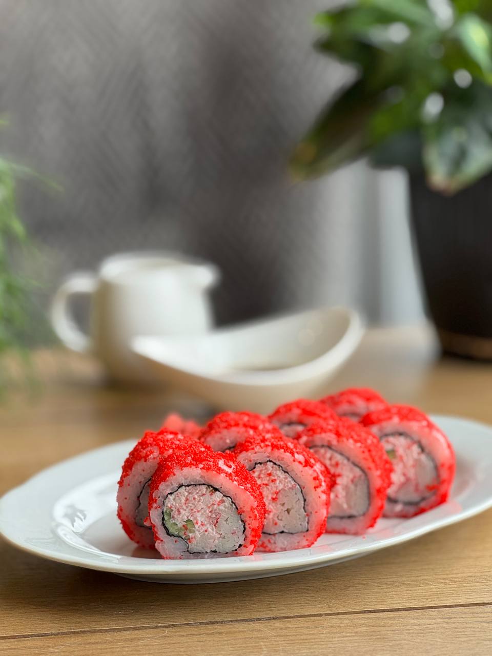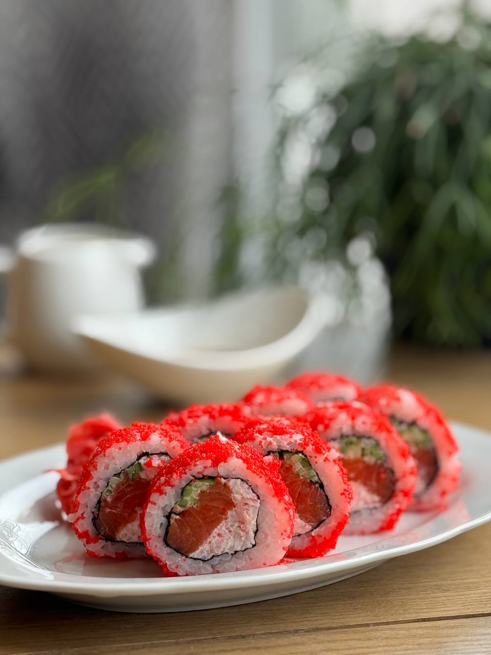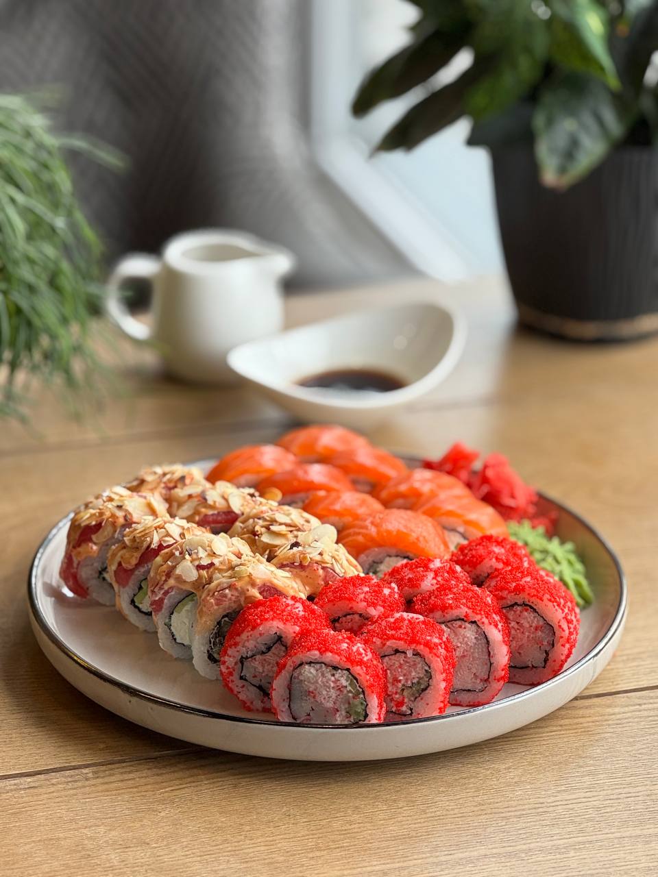 Ніжне філе лосося з вершковим соусом та ікрою Масага. Подається з картопляним пюре