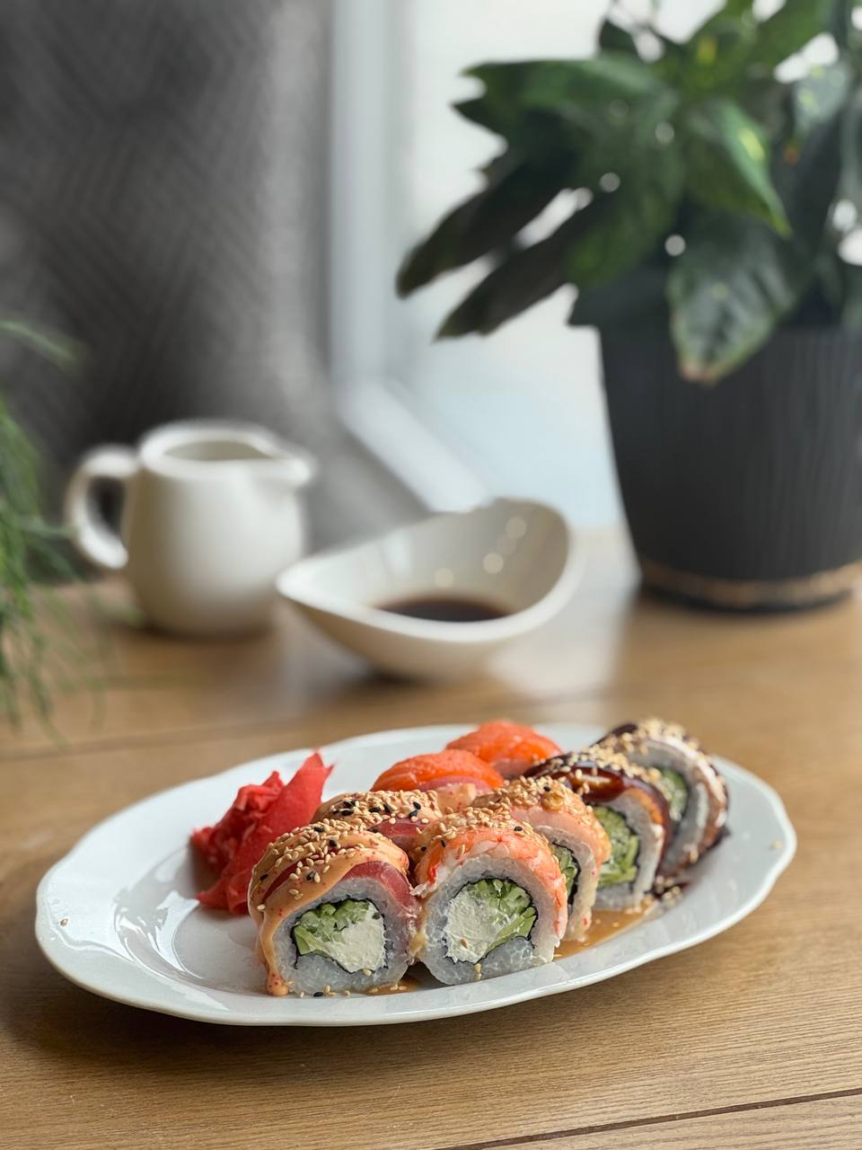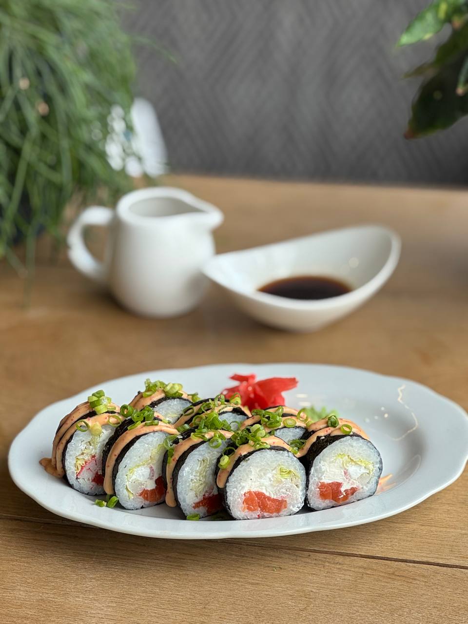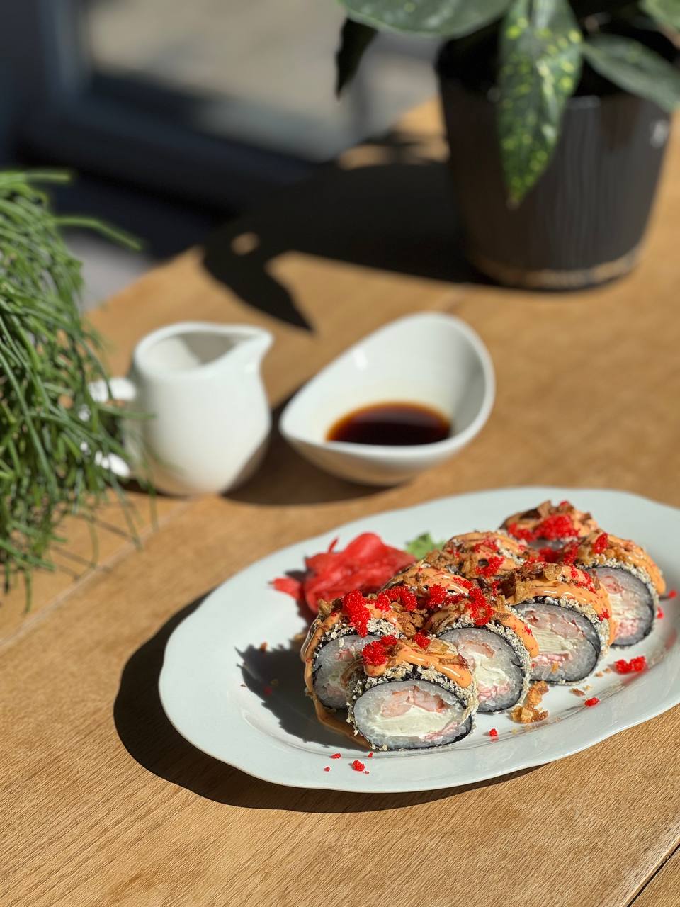 Ніжне філе лосося з вершковим соусом та ікрою Масага. Подається з картопляним пюре