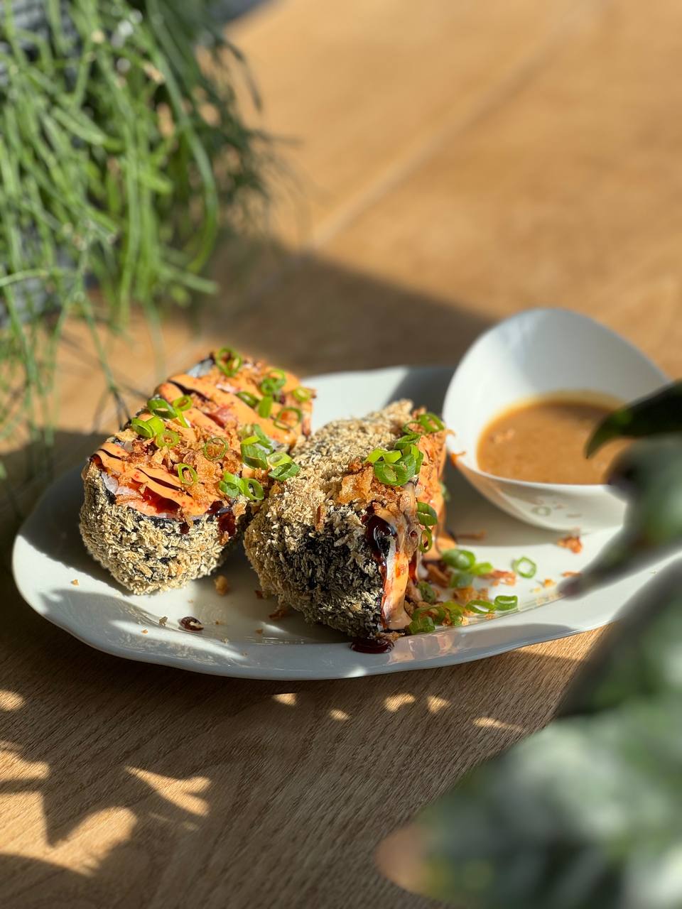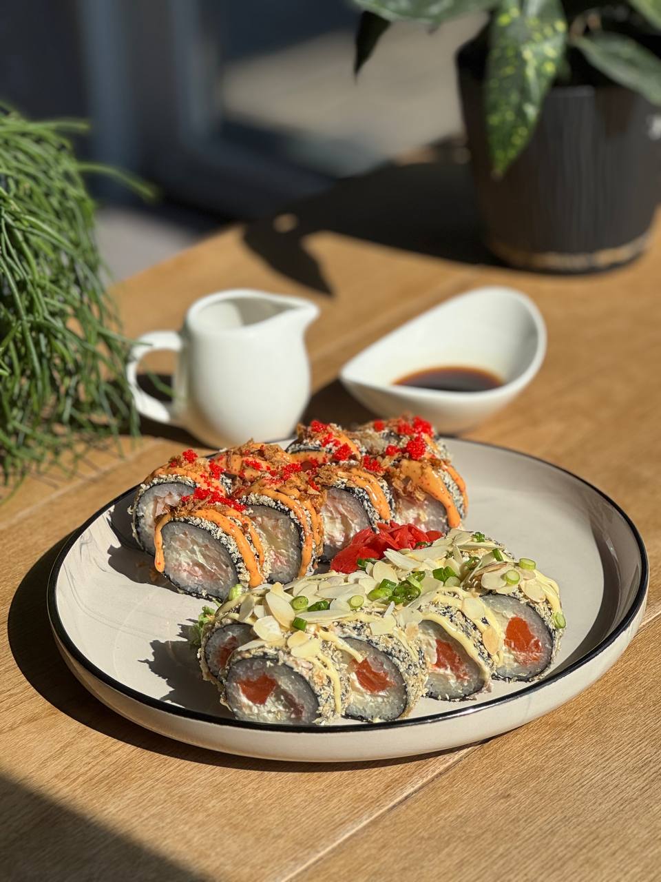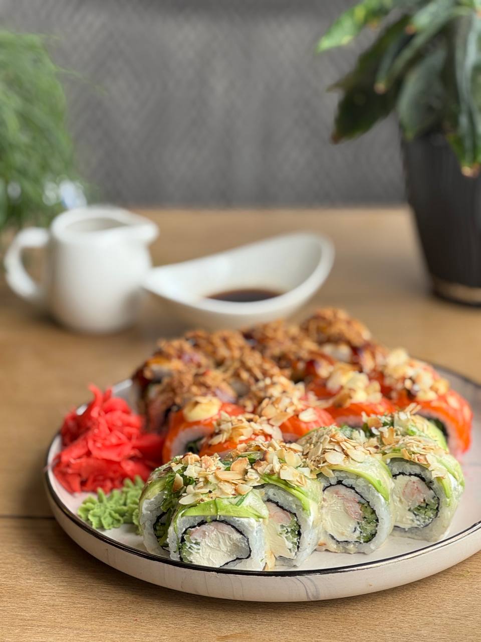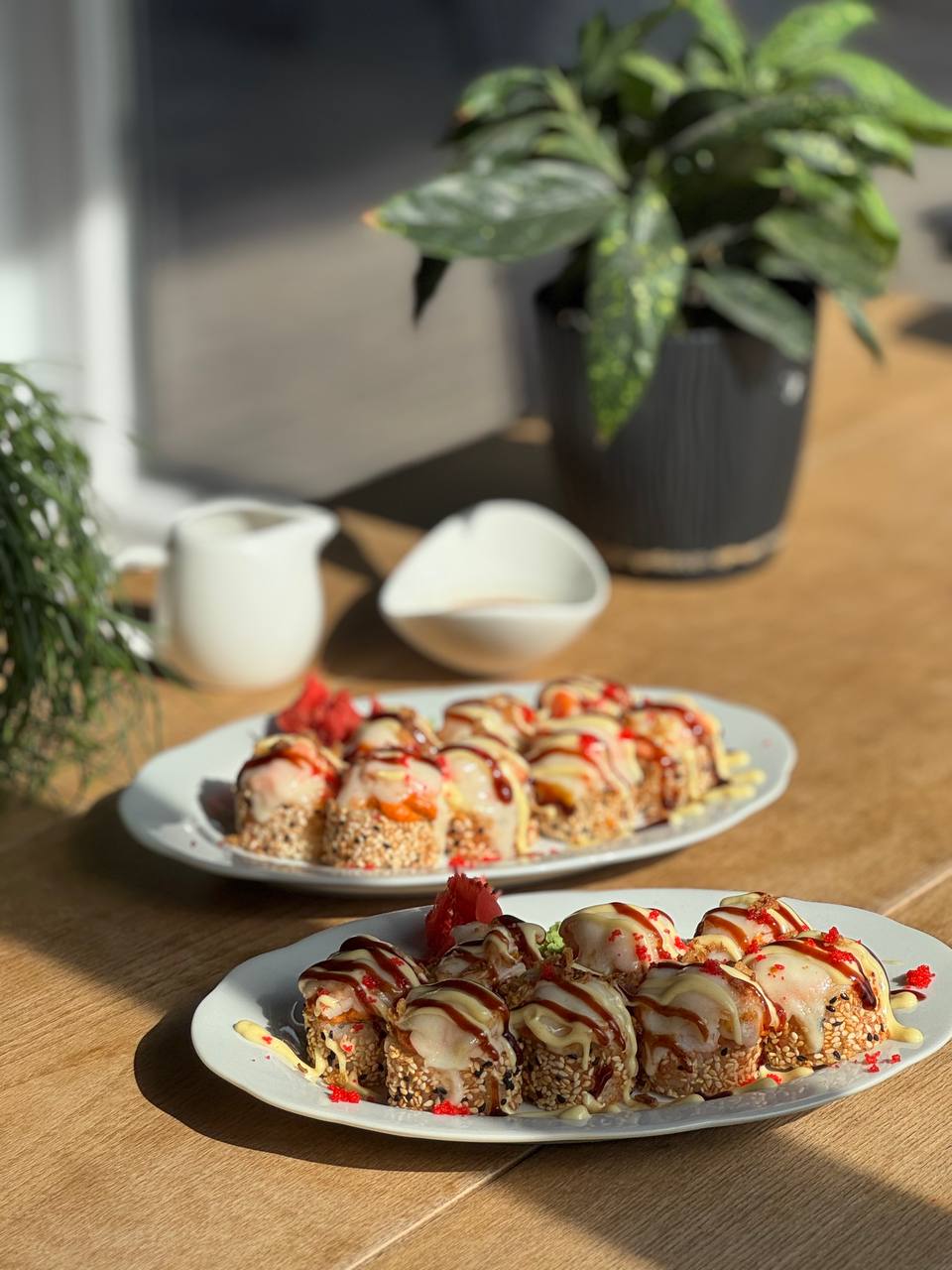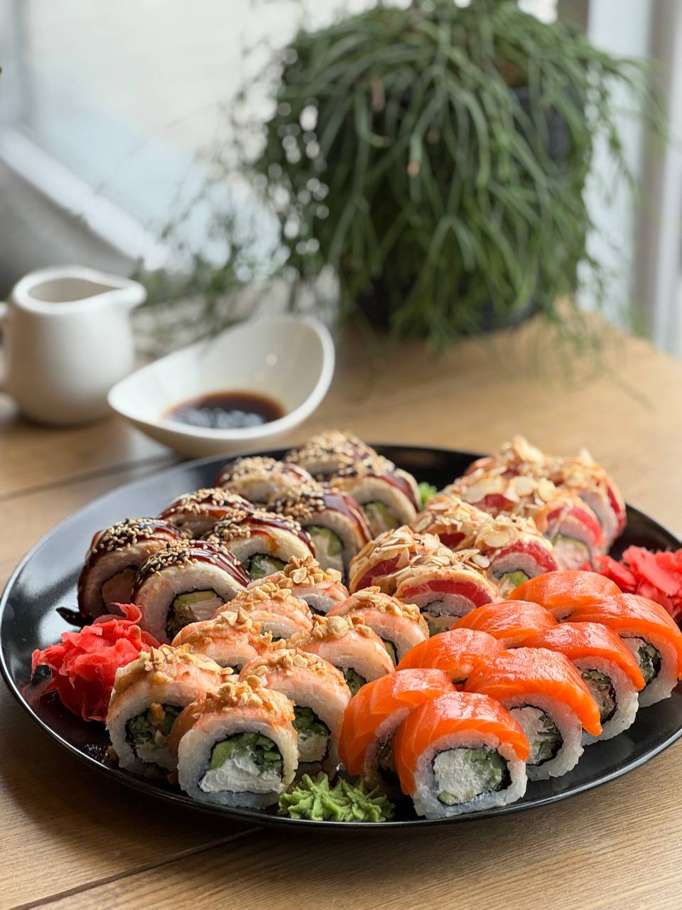 Бургер на основі булочки Бріош власного виробництва з додаванням листа салату, помідору, сиру Чеддер, свино-яловичої котлети, сирної котлети та соусом тар-тар.