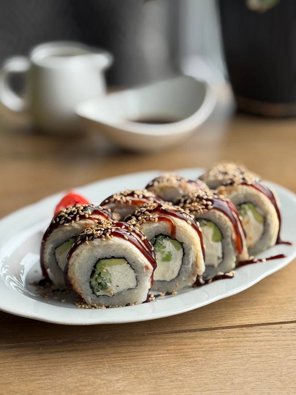 Локшина УДОН з морепродуктами у вершковому соусі з додаванням стружки тунця